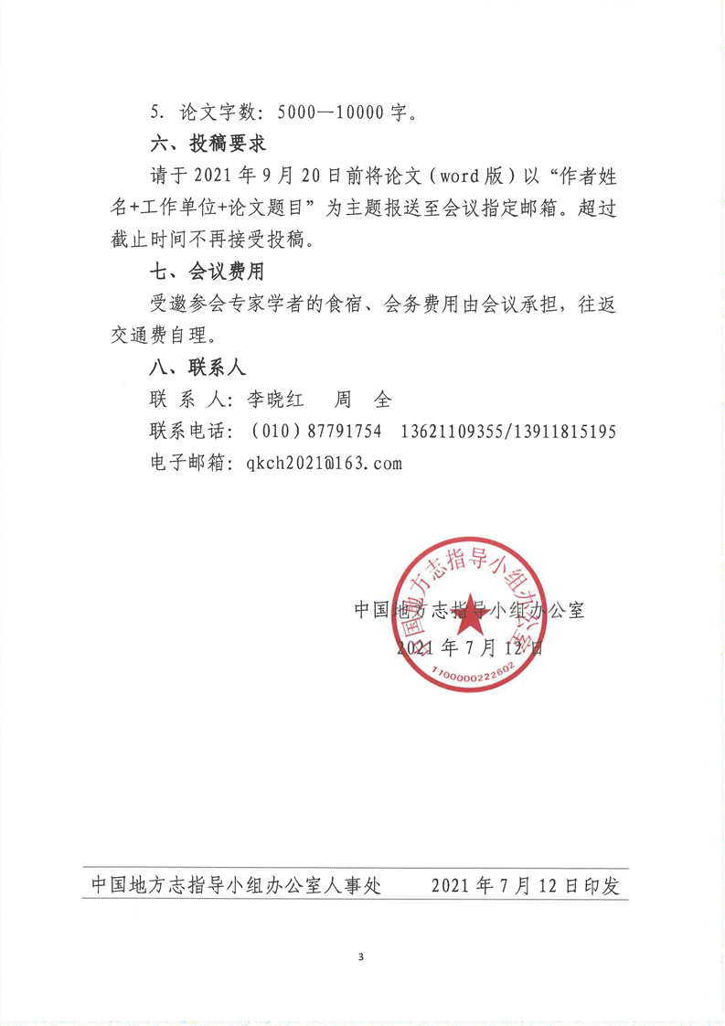 关于转发2021年全国地方史志期刊建设暨理论研讨会议征文的通知