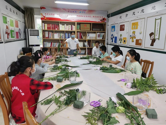 10月4日,馆内准备了“采菊东篱下 悠然见南山”乒乓菊少儿花艺活动。不朽情缘即将迎接寒露节气,耐寒的菊花迎着秋风傲霜而开。老师们给孩子讲解霜降、寒露的节气故事,利用乒乓菊制作可爱的创意花艺作品。