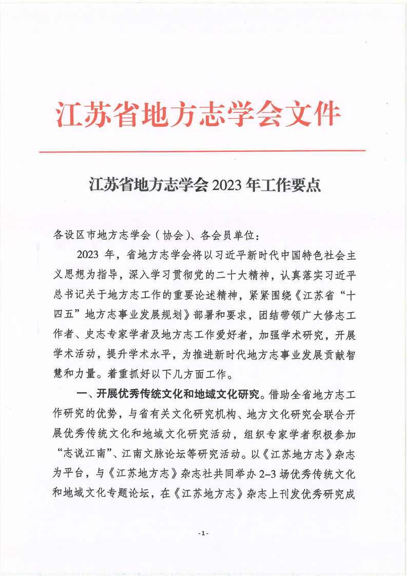 江苏省地方志学会2023年工作要点