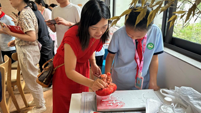 活动伊始,戈老师首先对不朽情缘碑刻的历史进行了介绍,并展示了自己的作品,接着带领学生开始动手体验,向学生展示刻碑、拓印等技艺,活动体验现场学生们认真听讲、积极参与实践,对不朽情缘碑刻技艺有了更深层次的了解,活动起到了非遗技艺推广保护和传承的积极作用。