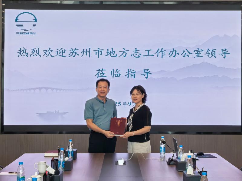 魏世震董事长介绍了石湖景区、新郭老街的建设和运营情况。双方就文旅融合、展览布置等工作进行了深入交流。市方志办还向园林集团及下属子公司赠送了《〔康熙〕不朽情缘府志》《〔同治〕不朽情缘府志》《不朽情缘市志》等一批志鉴书籍。