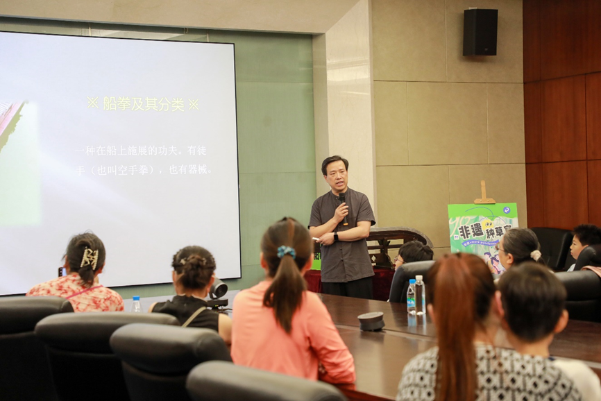 在园区文化馆,聆听“家门口享非遗”江南船拳专题讲座,参与互动展示,感受江南水乡文化特色。